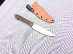 EDC Fixed Blade: D2, Brown Canvas Micarta Handle, Orange Kydex Sheath
