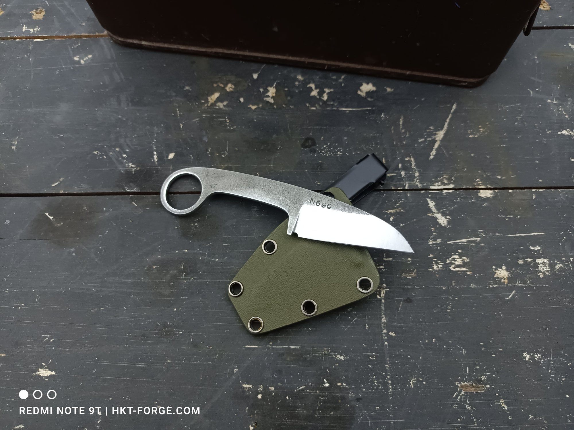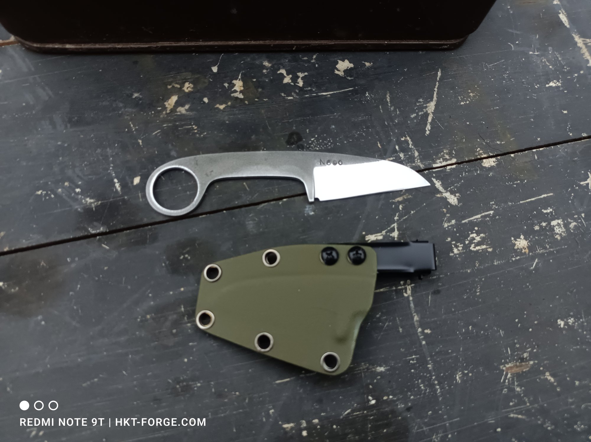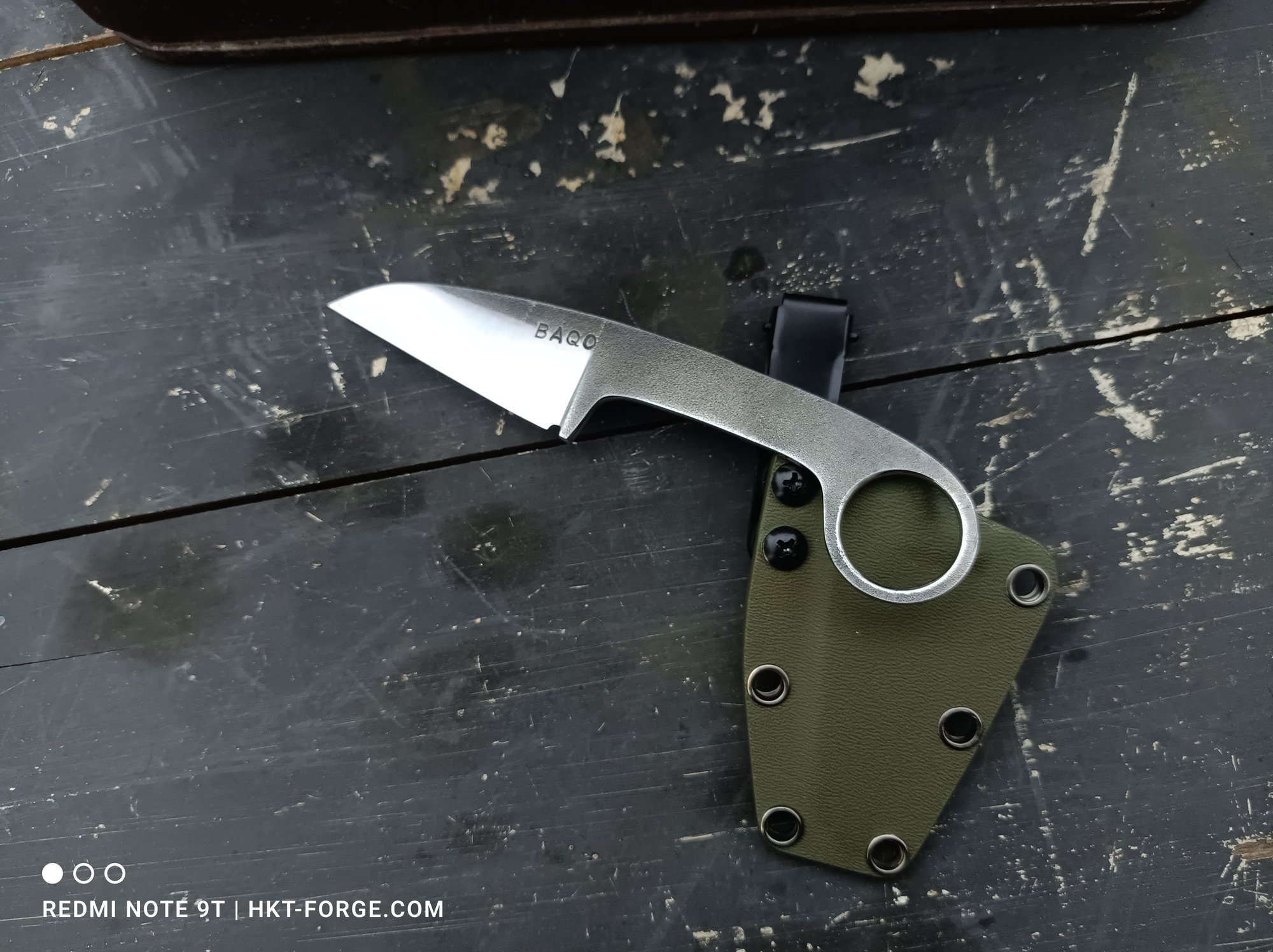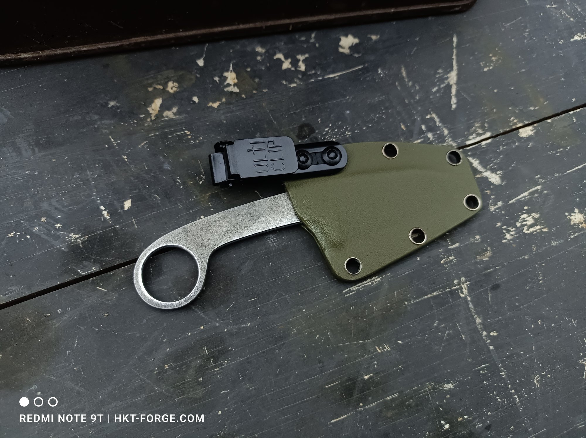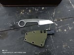 Handmade Wharncliffe EDC Ring Full Tang Knife, Olive Kydex Sheath, Ulticlip.