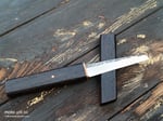 The Japanese Kiridashi is a multi function single right bevelled knife. Often sold as a Japanese marking knife, the stiff, single bevelled blade of the Kiridashi truly excels at heavier cuts; leather, veneers etc. Kiridashi are also wonderful tools for carving, they are used in Japanese kitchens for carving vegetables into ornate decorative flowers. Their suitability for carving also makes the Kiridashi a favourite tool for luthier (stringed instrument making).