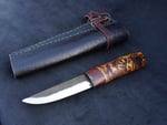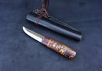 Yakut knives are dominated by a fuller groove on the blade and a wooden handle made of Karelian Birch, a simple but useful design. This gem of utility has served reindeer shepherds since ancient times